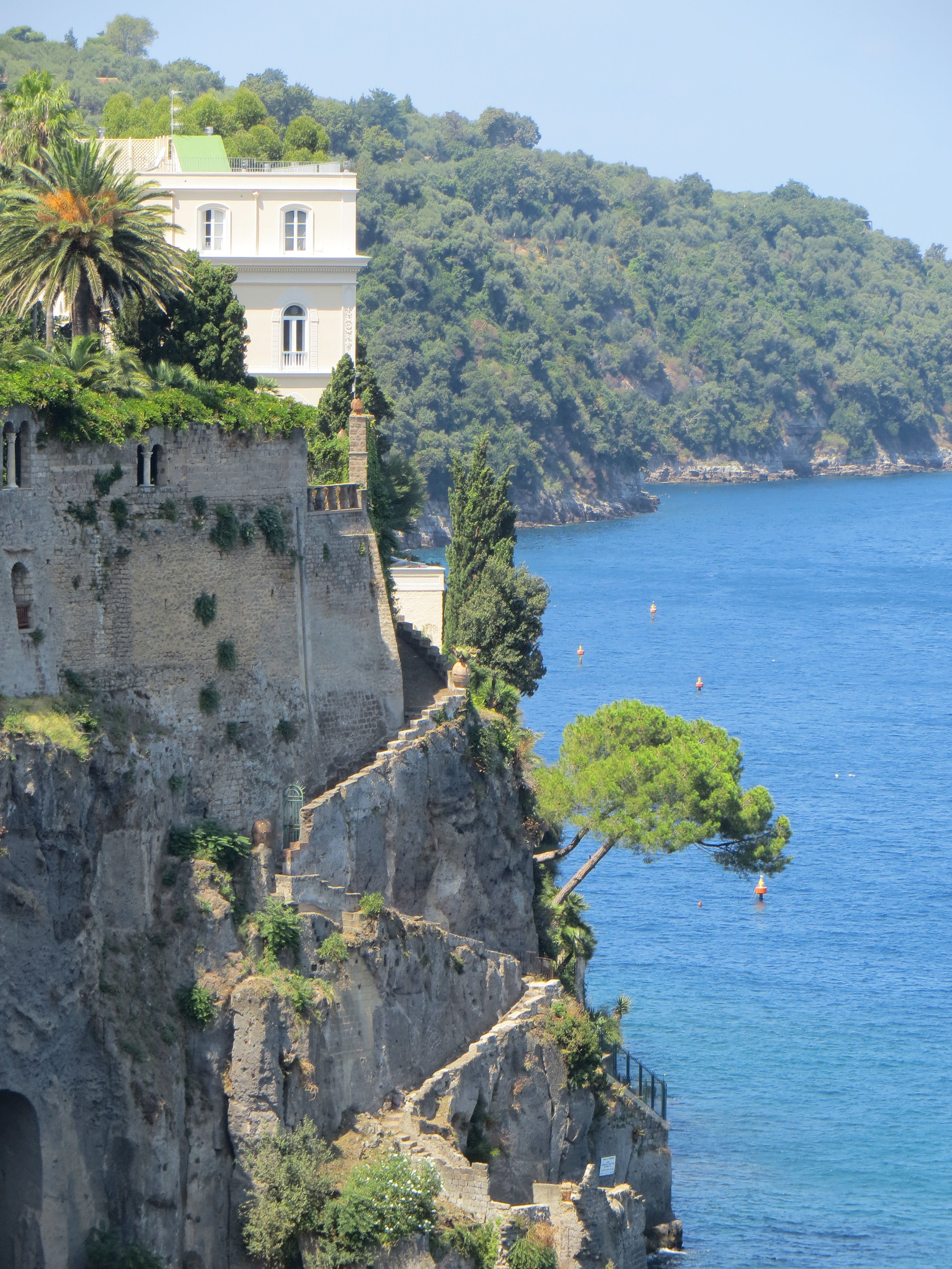 From Paestum we headed to the Amalfi Coast. As you are not permitted to take campervans on the southern coast road (the Amalfi side) we headed along the northern side of the peninsula to Sorrento. It is easy to see why this area is so famous and so popular – it is both dramatic and beautiful with towering cliffs dropping away to the azure blue sea, houses clinging like limpets and steep stairways snaking their way to the water below. It is also incredibly busy and driving was not an easy task, with cars, scooters and pedestrians coming at us from all angles. Deane did a marvellous job weaving us through this melee!