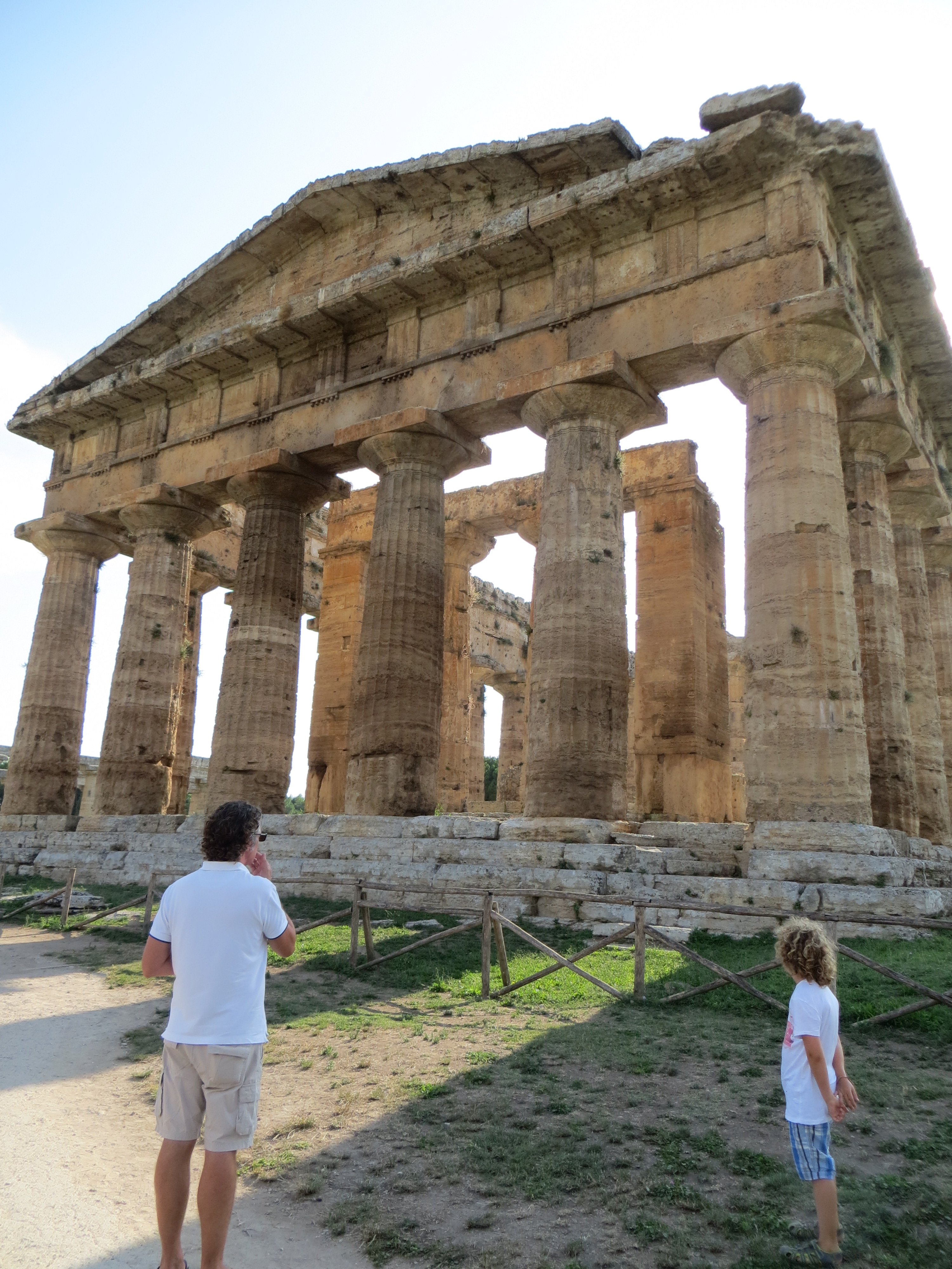 So….we left Bari and headed across Italy to the west coast, with a small town called Paestum in the sat nav. It was highway all the way to make up our miles but still through some picturesque countryside with towns perched high on the hills. We knew we could only be in Italy when we passed lorry after lorry transporting tonnes and tonnes and tonnes of tomatoes all over Europe. Deane commented ‘I feel sorry for the ones at the bottom’ but felt OK when Will and I reassured him that they were only tomatoes.
