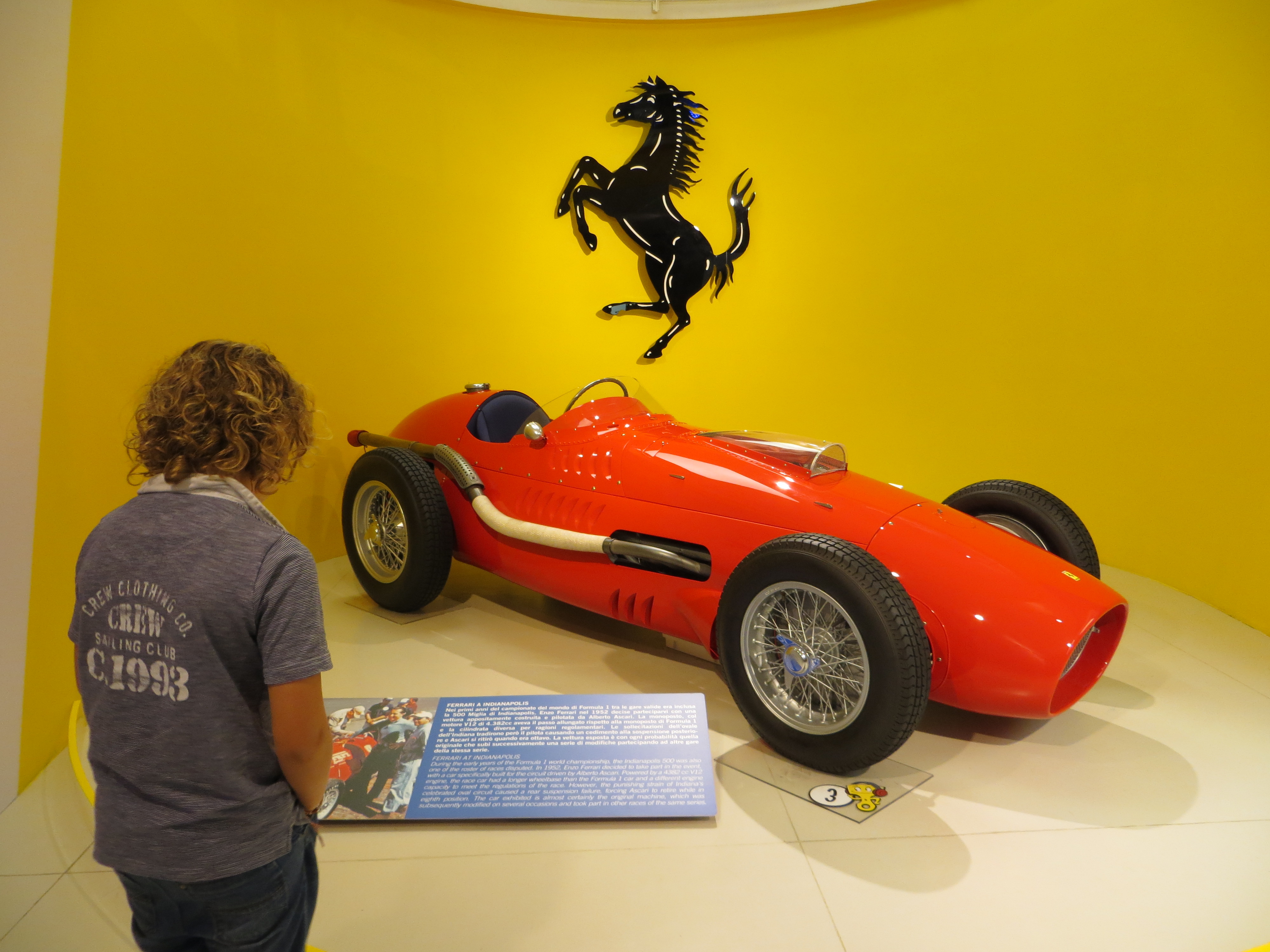 Taking a bit of a detour inland, we zoomed into Maranello for a pit stop at the Ferrari Museum…ok that is enough motoring references. Testosterone on wheels isn’t really my thing and I was sorely tempted to simply not tell the boys about it and putter quietly by in our camper, but the overt excitement (and flexing of guns) in the van when I suggested the detour made me very pleased I had spoken up. The museum is a bit in the middle of nowhere but you know you have arrived as the streets become full of the rasp of these (admittedly) impressive cars being taken for test drives. The museum itself is a slick but surprisingly amenable operation. With dozens of vehicles on display from both the race track and the road, from the glamorous to the gregarious, it was a wonderful view into otherwise unobtainable worlds of petrol and picnics, helmets and head scarves. The boys were in their element and after we went around the cars for a third time, I decided an espresso was the order of the day before we returned to our van (who we had had left sulking in a back street car park).